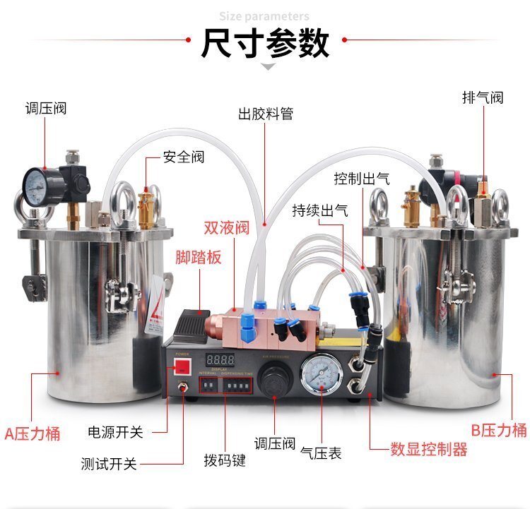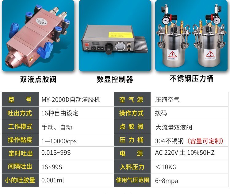 MY2000D全自動ab膠點膠機雙液灌膠機雙組份硅膠點膠套裝帶壓力桶