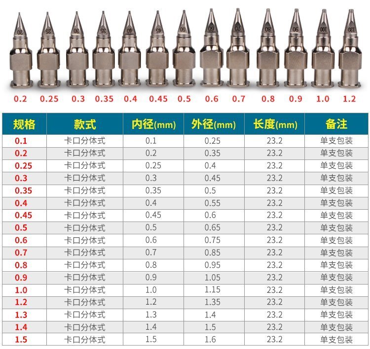 分體式精密針頭,采用303日本進口鋼材鍛造而成,內表使用鏡面拋光工藝,光滑度高不易堵塞;適合工程/工廠長期生產使用,有大量現貨供應,歡迎咨詢采購!