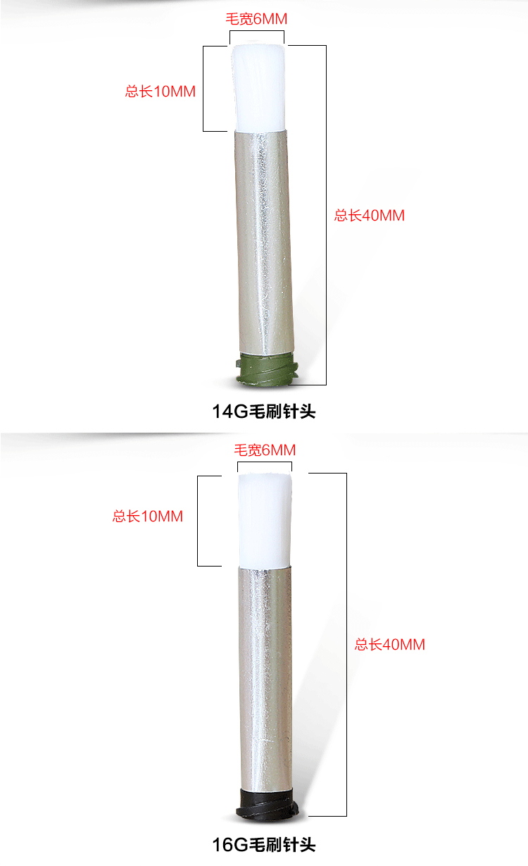 毛刷針頭主要針對不同面積涂膠的產品工藝,具有涂膠均勻、不堆膠、不斷膠,適合大面積表面刷圖膠液;毛刷為尼龍材質,韌性佳,不斷毛,不 掉毛,軟毛接觸產品,安全可靠,極大的提高生產效率!