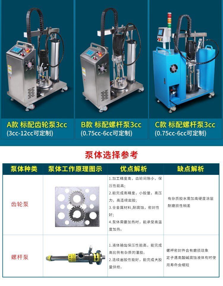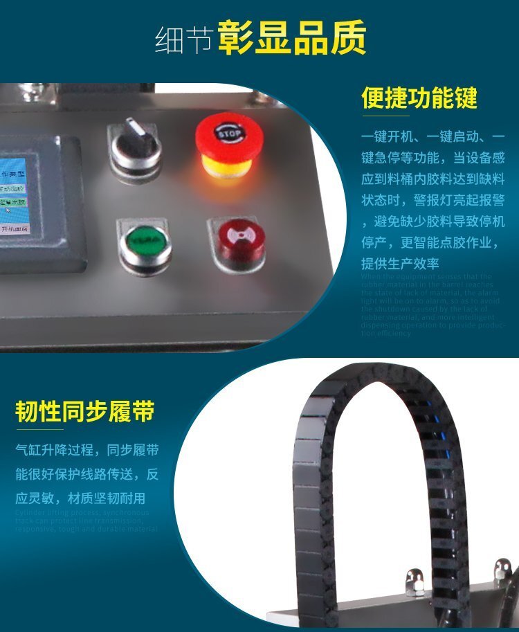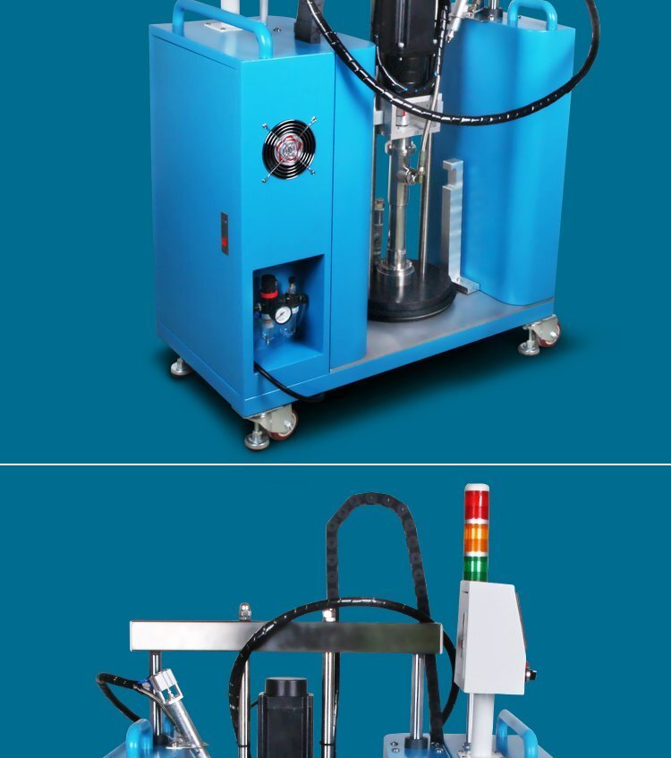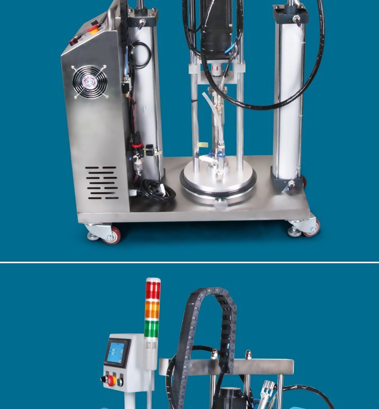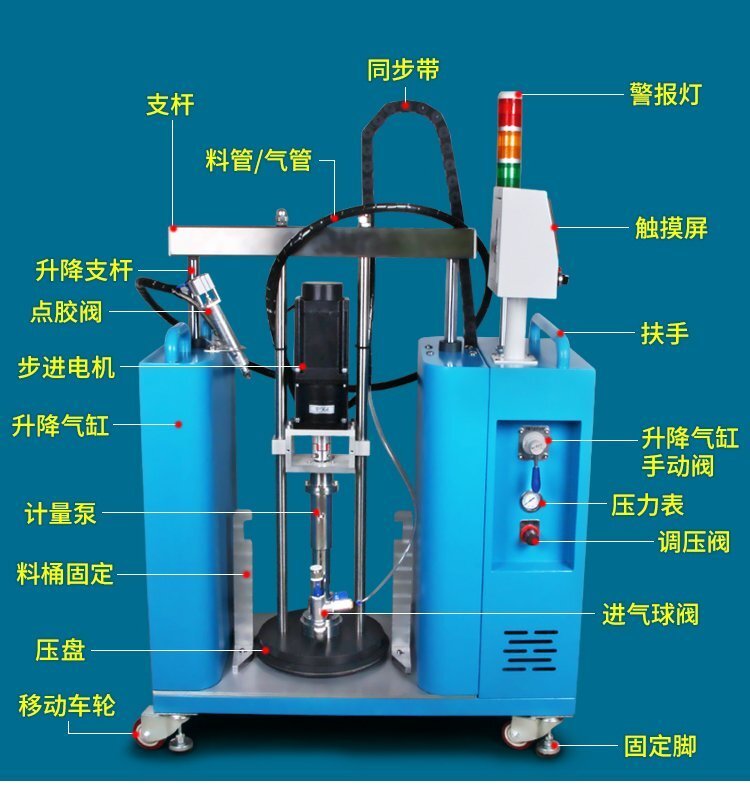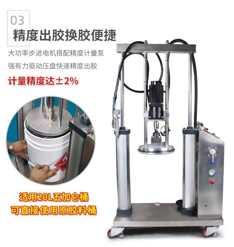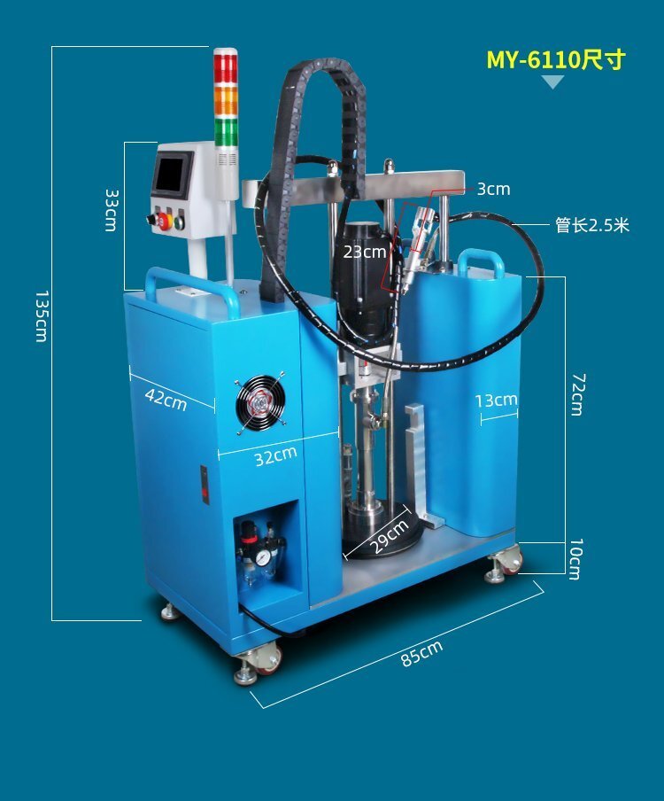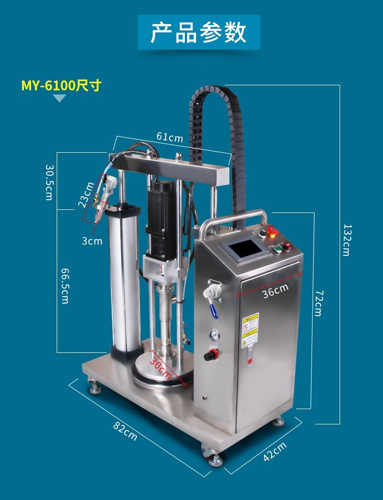 MY-6100高粘度壓盤點膠機,是由本公司自主研發設計,精密加工制造的一款高粘度硅膠壓盤泵單液點膠機,采用步進機驅動,齒輪泵/螺桿泵送料,使膠水能夠連續穩定輸出,精度高;主要用在電子行業、LED行業、工藝品行業等廣泛應用;具有高壓強出膠,升降大氣缸,出膠快速,持續穩定,高粘度膠水輕松壓出、快速調試設置出膠量、精度點膠、定時定 量出膠、智能檢測機器故障報警等功能;適合多種單組份膠水,如:高稠度硅膠、油脂類黏膠、玻璃膠、聚硫膠、潤滑脂、亞克力膠、油漆、固體膠、橡膠、亮漆、瞬間膠等工業膠水;出膠頭配置精密單液閥