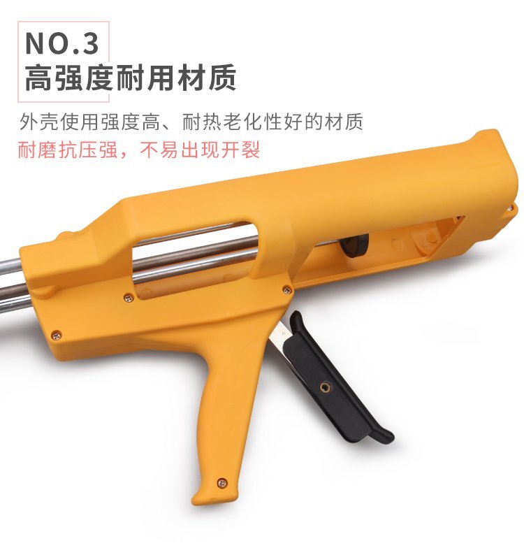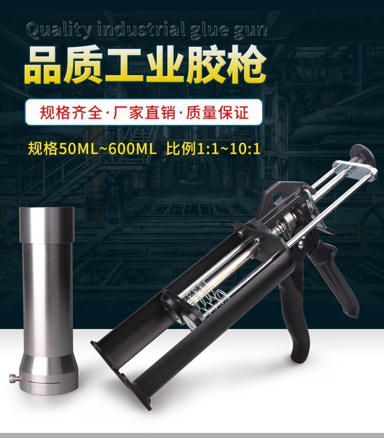 此款膠槍為200毫升AB膠筒1:1專用,推桿式結構,打膠高效省力;外殼采用特殊材料制造,不易斷裂,推桿使用質密金屬材質,耐力性好,不彎曲變形,適合工程/工廠長期生產使用;有大量現貨供應,歡迎咨詢采購!